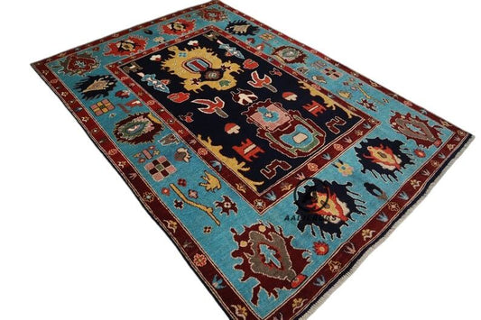 Blue Oushak with Multicolours rug multi size 8x10/9x12/10x14 Hand-knotted Vintage Oushak Wool Area Rug for Living Room, Dining room. area rugs