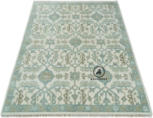 Hand knotted Rug Handmade Traditional Turkish Oushak Rug with Soft Neutral white and Rust Accents - Classic Area Rug for Boho Home Decor
