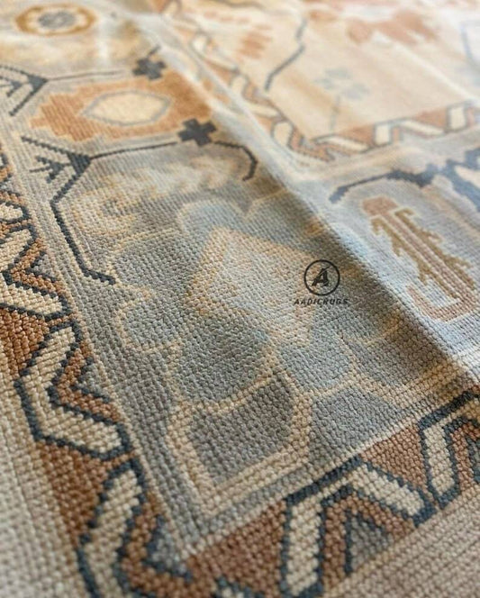 Vintage-Style Turkish Wool Carpet- Bohemian Beige Oushak Home Decor large area rug
