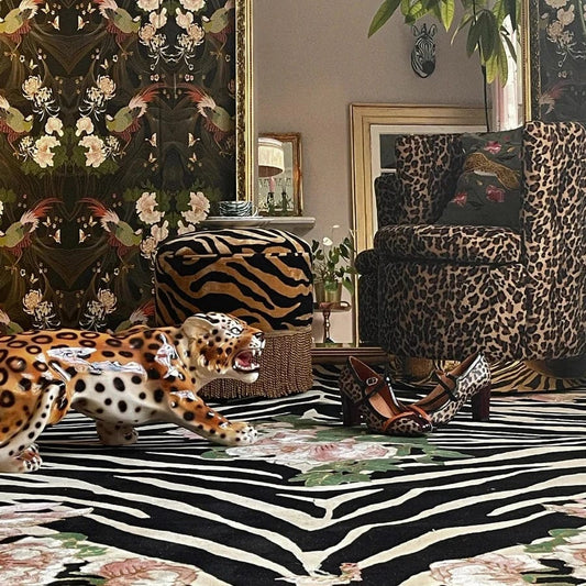 Tiger Florals Hand Tufted Rug PRE ORDER Black And White Zebra design Rugs