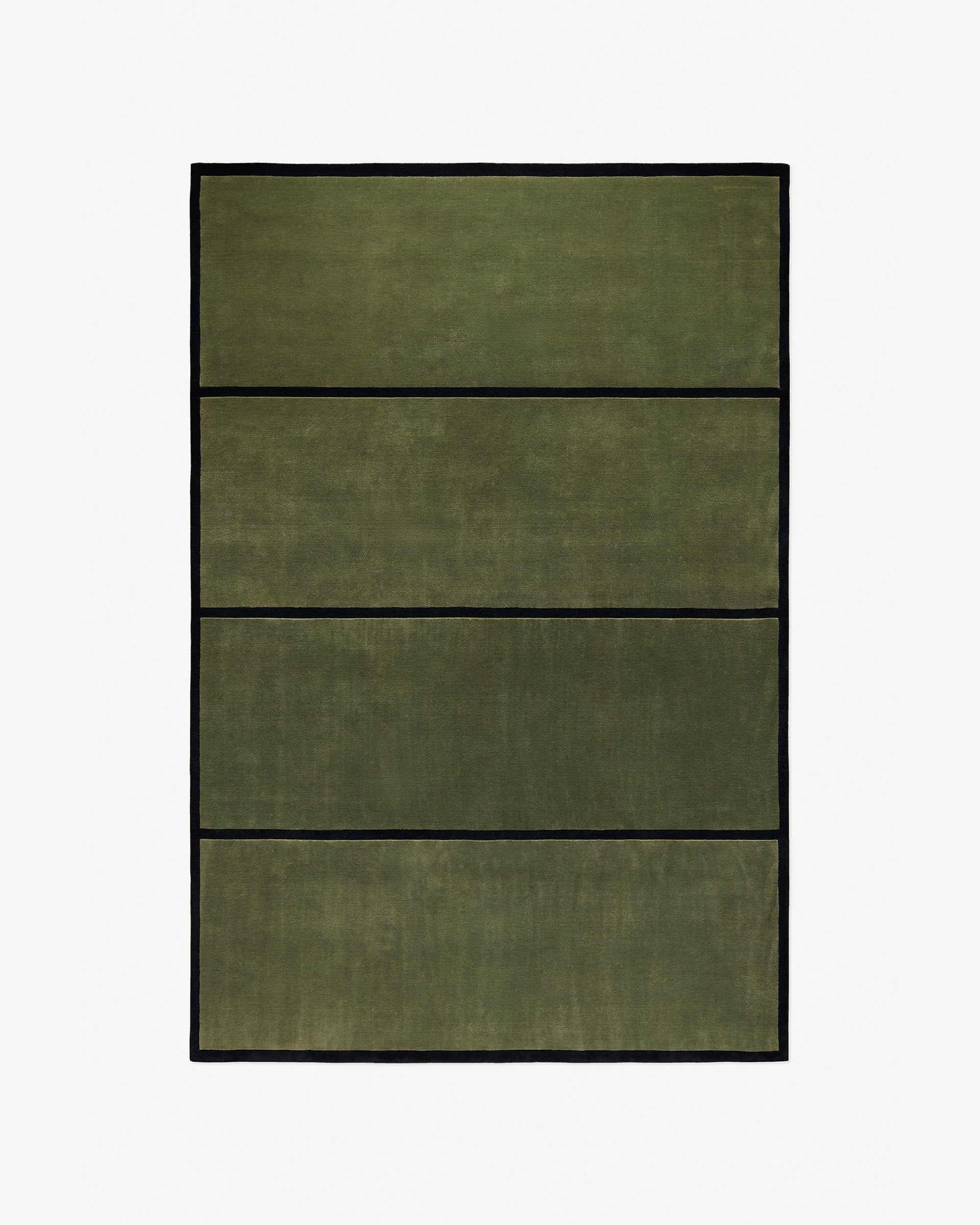 Dark Green Minimalist Rug for Living Room - Solid Olive with Black Border & Stripes - Modern Contemporary Carpet